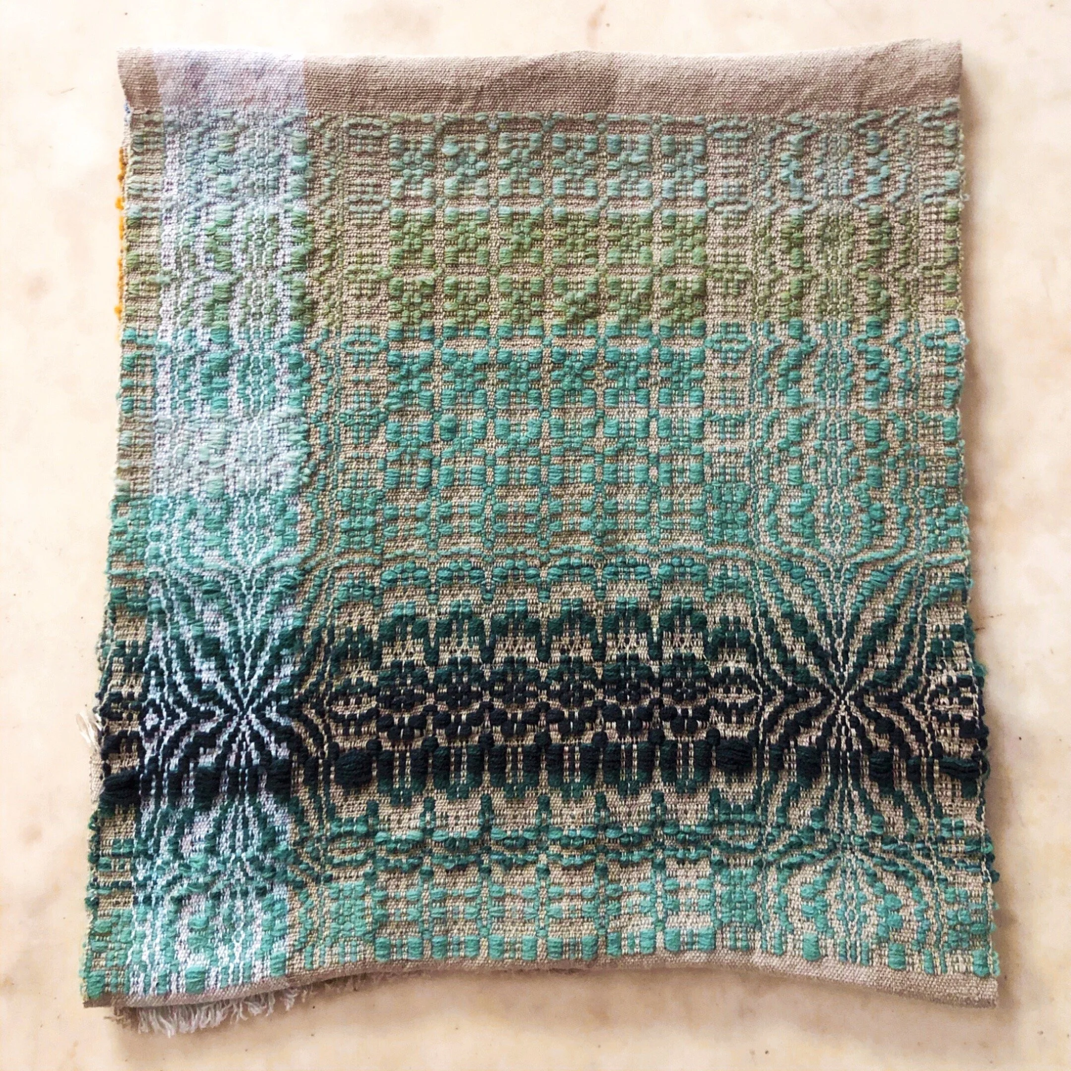 Lee’s Surrender is an overshot draft designed by a prolific Rhode Island weaver called Weaver Rose. Originally designed as a coverlet, I enjoy taking elements of his original work and creating dish towels or pillow coverings. Perhaps I’ll make the coverlet one day!